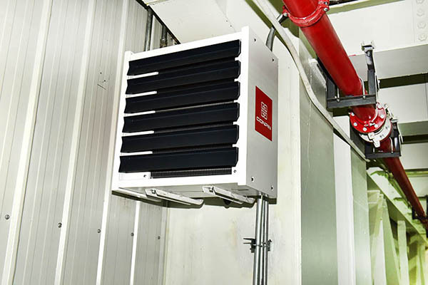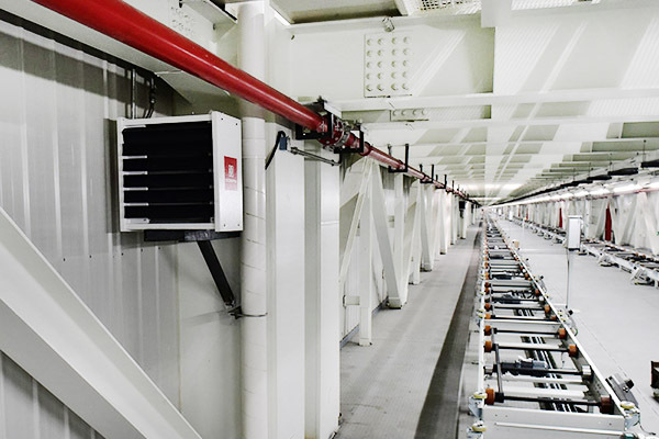 张北运达风电有限公司,采用康平高大空间热水型吊顶暖风机。