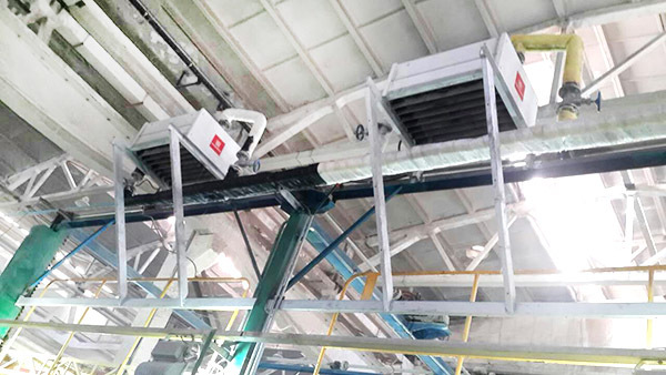 郑州宇通客车车间应用康平高温蒸汽顶吹暖风机。