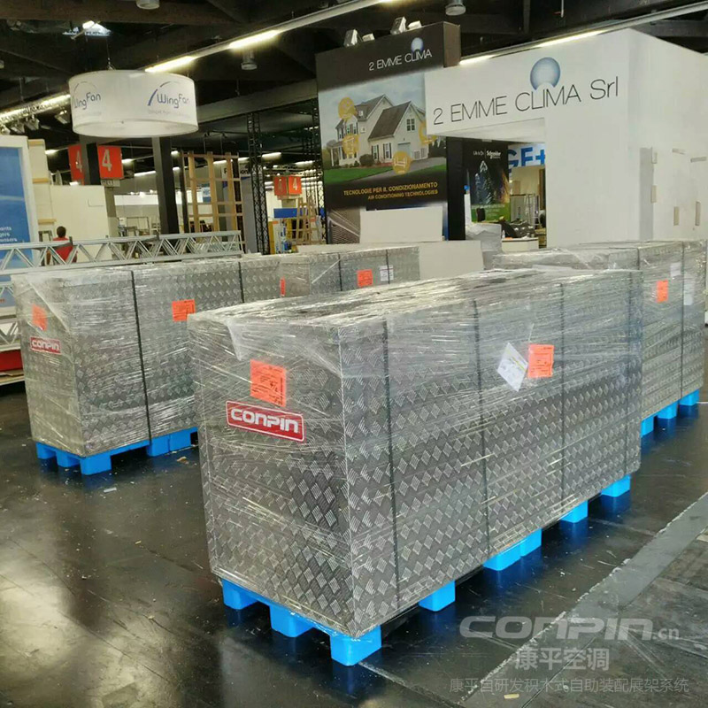 康平独家自助式装配展架系统,在2016德国纽伦堡展会顺利通过测试,它具备自助快装、自助吊具、自助安装平台、自助货柜移动等功能,安装与拆卸方便快捷,展架自身体积小,240立方米展展示空间,全部收纳后不到1.35立方米,为出国参展提供便利条件…… 节省了大量的人力、物力。