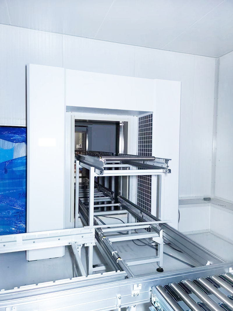 康平冷库无霜空气隔离系统,增加了生产线传送带和冷库保温门一体化模块