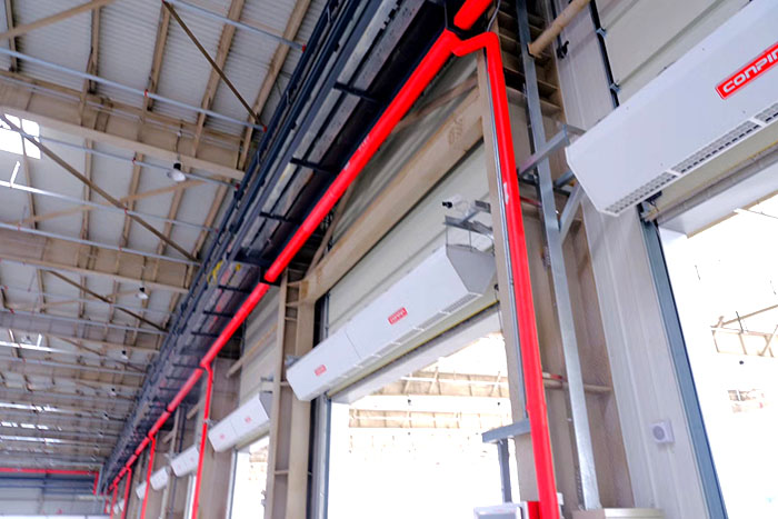 康平全新一体6米模块化,定制版大门空气幕,运营大兴国际机场东方航空七万平米货运区,新系统风力强劲,结构简单,安装方便,整机通过国家空调质检中心送检,为新机场增加绿色节能新亮点。