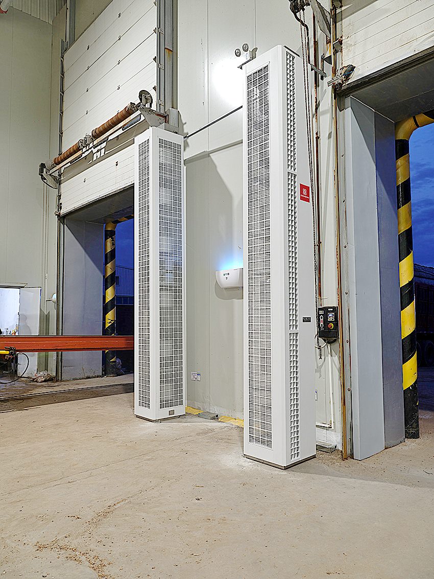 选用产品:大门侧吹风幕,吊顶辐射板,