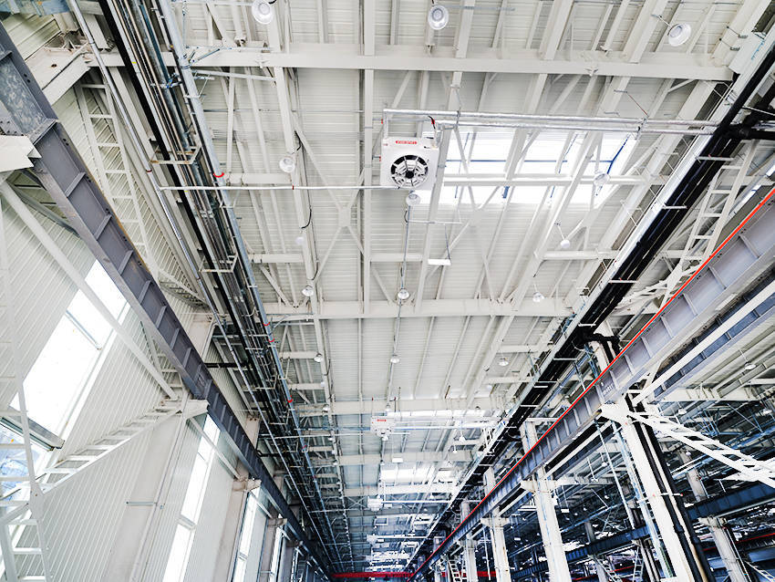 北方华创N5基地真空装备扩产项目选用康平超薄轻量化高大空间空调机组,优化后的空调机组在保证风量、热量不变的前提下,整机重量减少35%,高度降低50%,降低屋面荷载1/3,提高建筑有效高度空间50cm,实现机组超薄化、轻量化,解决了现有技术中的高大空间空调系统高而重的问题,有效提升建筑空间使用高度,降低建筑屋顶荷载。