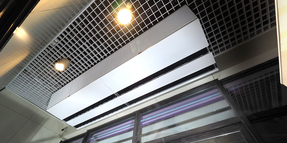 康平明装双气流顶吹式热风幕,双层气流送风,送风距离比传统进口风幕机提升15%,封门效果更高。能有效封堵建筑开口,避免室外冷空气侵入,减少室内热损失,并有效向室内供热,满足建筑环境温度要求。本产品具有体积小、风量大、噪声低、运行稳定、封门效果好、安装维修简便等优点。
